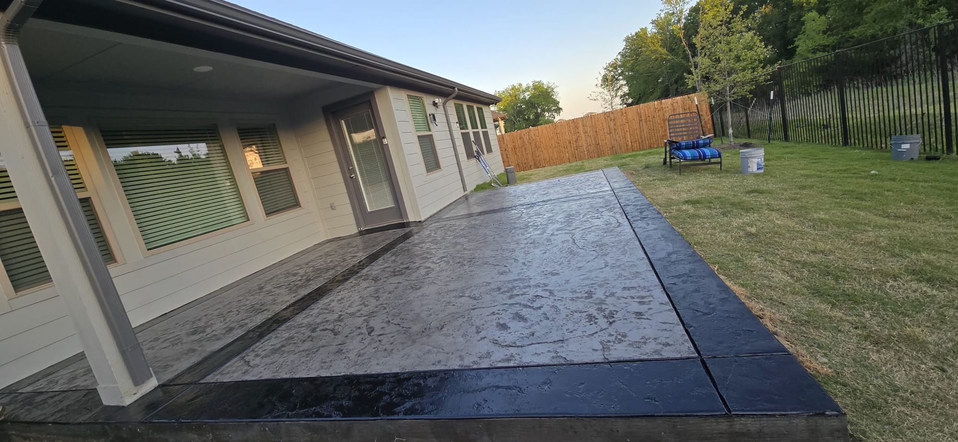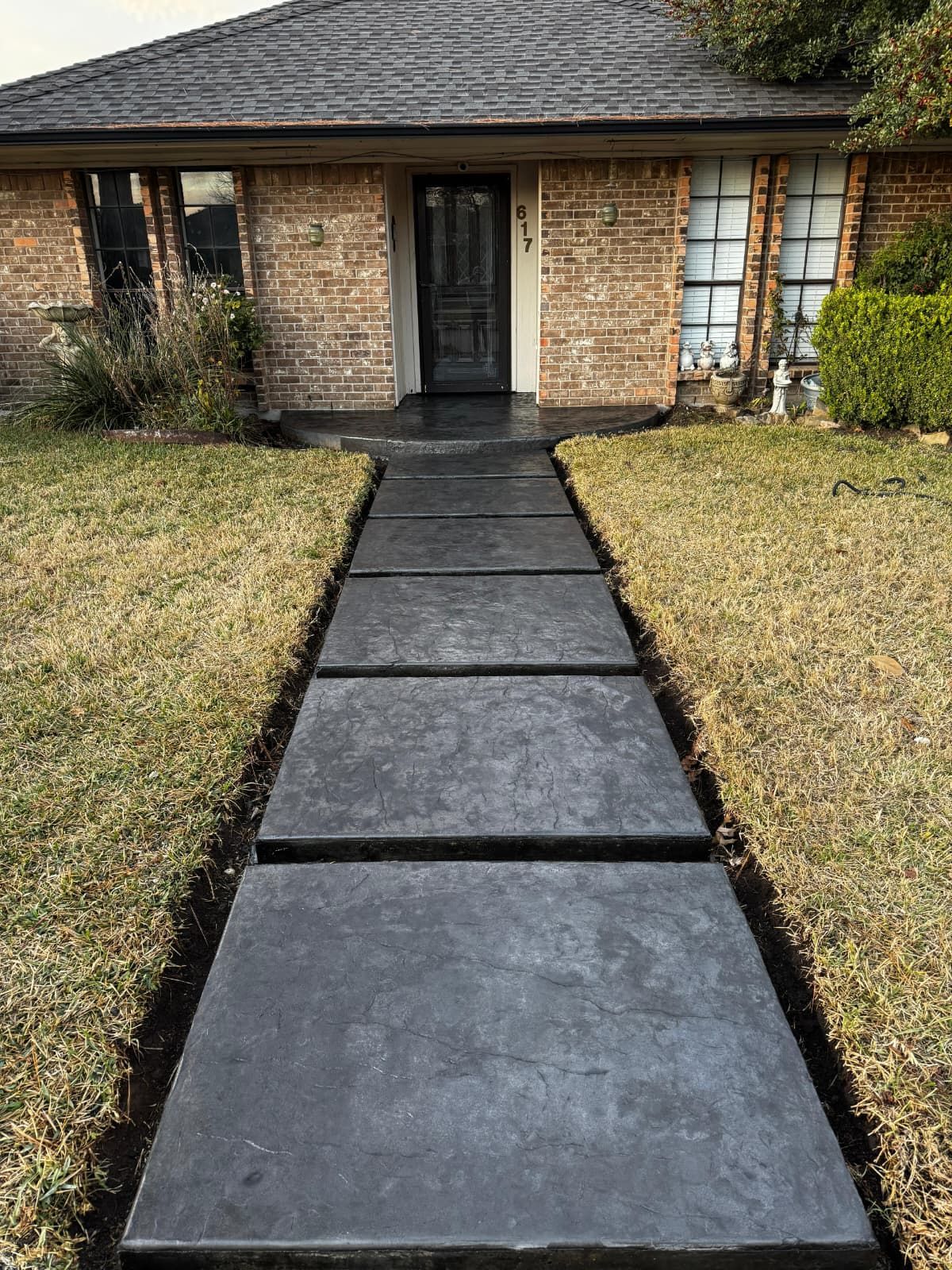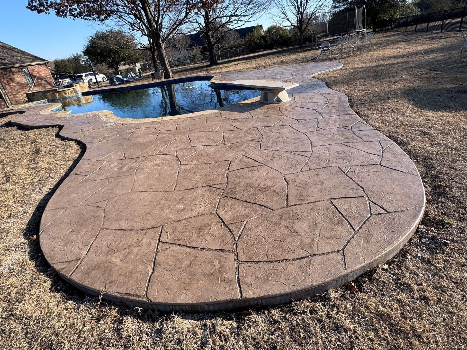 Stamped and colored concrete combines the durability of concrete with decorative designs and custom colors for a high-end, finished look..
